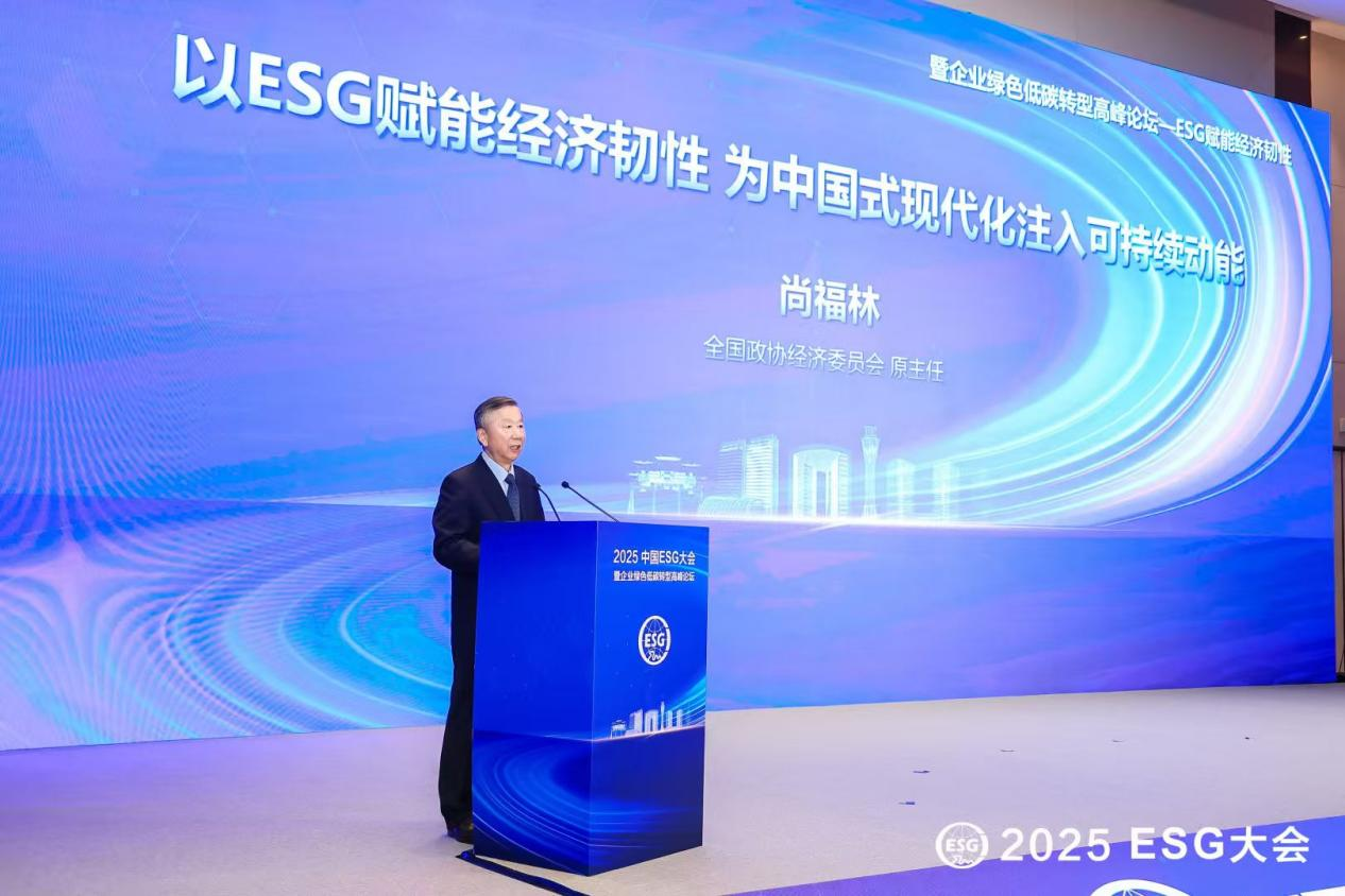 11月7日,在由中国社会工作联合会指导,首都经济贸易大学、中国企业管理科学基金会主办的2025ESG大会暨企业绿色低碳转型高峰论坛上,全国政协经济委员会原主任尚福林围绕ESG与经济韧性的深度关联展开分享,以务实视角探讨中国式现代化进程中的可持续发展路径,回应时代关切。