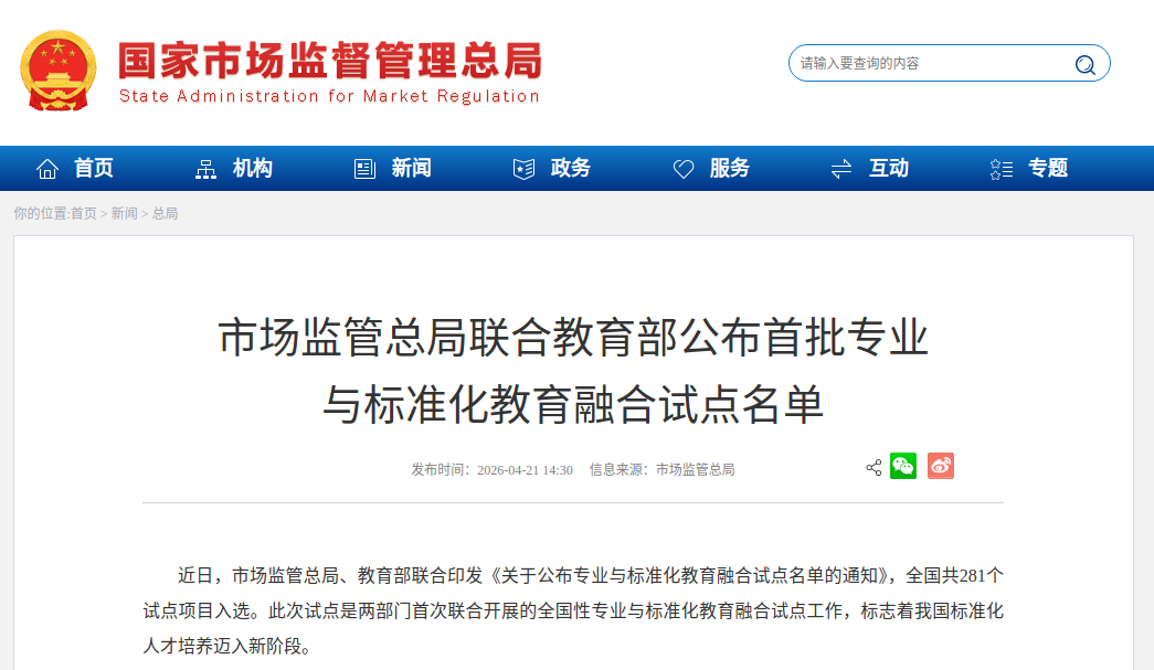 近日,国家市场监督管理总局与教育部联合公布首批全国专业与标准化教育融合试点名单,我校工商管理(ESG投资与管理)专业成功入选“专业教育培养模式”试点项目,试点周期为4年。我校此次成功入选,成为北京市11所获批院校之一,标志着我校专业教育与标准化人才培养的协同推进迈入新的发展阶段。